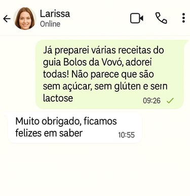 🍰 Você receberá uma coleção completa de bolos da vovó, com receitas ilustradas passo a passo, combinações criativas e orientações claras para preparar bolos fofinhos, saborosos e irresistíveis para qualquer ocasião — todos sem açúcar, sem glúten e sem lactose.